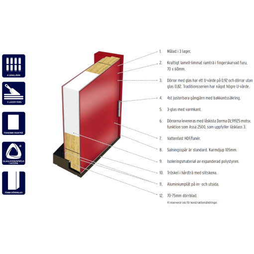Sidefeltene er lakkert med 3 lags maling for beste finish og holdbarhet.